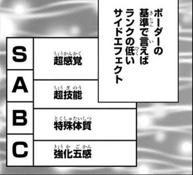 ボーダーでは能力の希少性によってS・A・B・Cとランク分けをしている。
