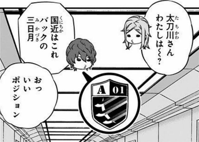 太刀川によれば、隊のエンブレムの下弦の三日月は国近柚宇を表しているとのこと。